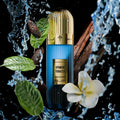 The fragrance opens with a bright, marine-like freshness lifted by saffron and the creamy warmth of tonka. In the heart, rich cocoa and amber meld with a subtle, smooth tobacco note. The dry-down is soft yet elegant, with iris petals and woody tones providing a refined, airy finish.